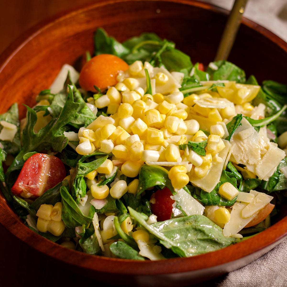 Fresh Corn Salad requires no cooking and puts the fresh taste of sweet corn, summer tomatoes, basil, and arugula front and center.