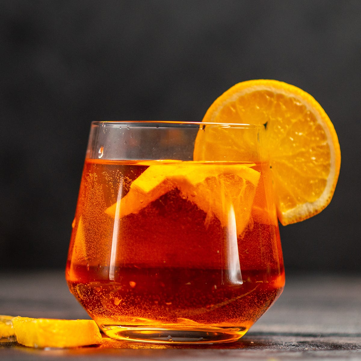 Instructions: Add some ice (small ice is best) to a cocktail shaker and then measure in the gin, sweet vermouth, orange liquor, and bitters. Use a spoon to stir the cocktail with the ice for at least 45 seconds to chill thoroughly. Strain the cocktail into a chilled glass, add a fresh or candied orange slice if desired, and enjoy!
