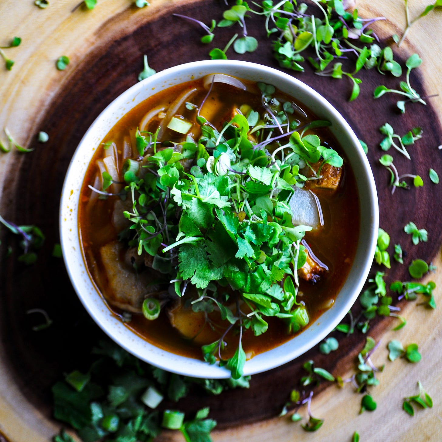 For example, if you flavored your broth with Thai spices and coconut milk, the soup bar offerings might include: