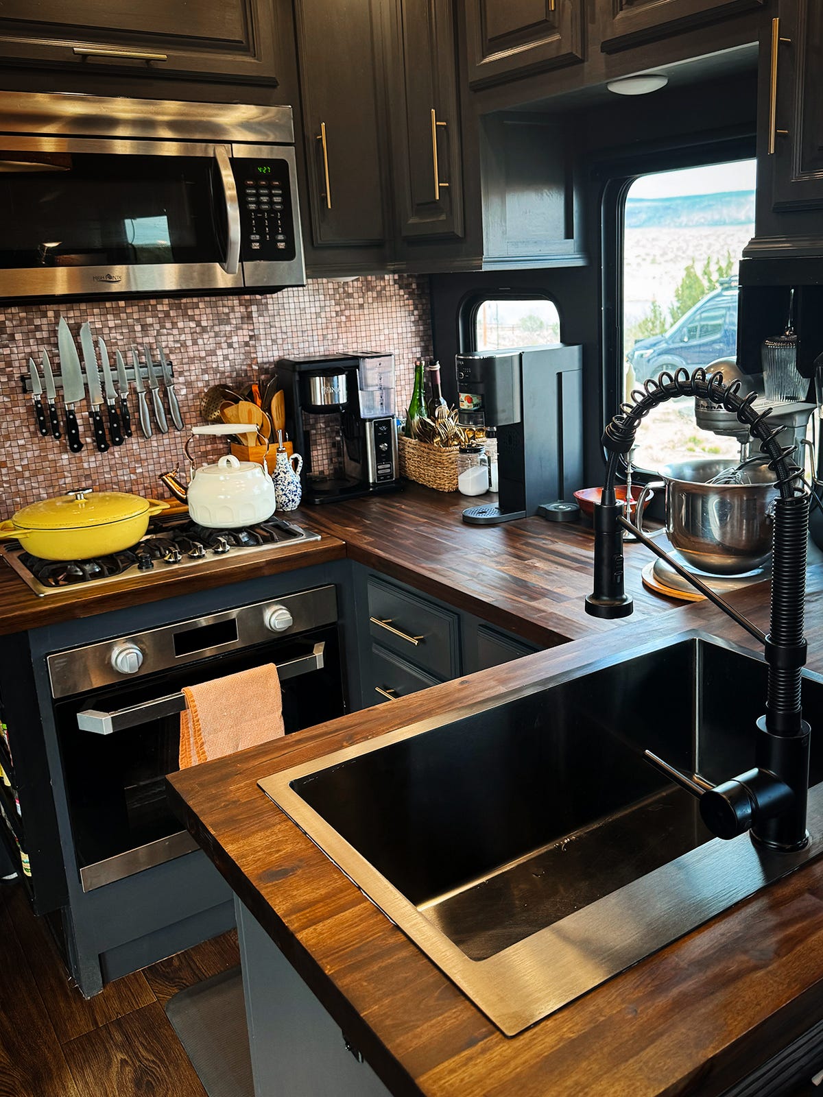But since moving into our RV, I’ve cooked my way across 38 states, created and published a few hundred recipes, and hosted gatherings with as few as 2 guests and as many as 40. (For those of you with a small kitchen, I piled a whole bunch of tips and tricks for organizing a small kitchen into this article.)