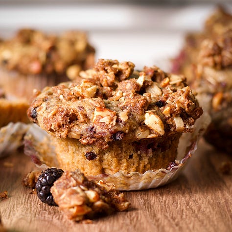 Top muffins with the oatmeal streusel in this recipe for Blackberry Muffins with Oatmeal Streusel