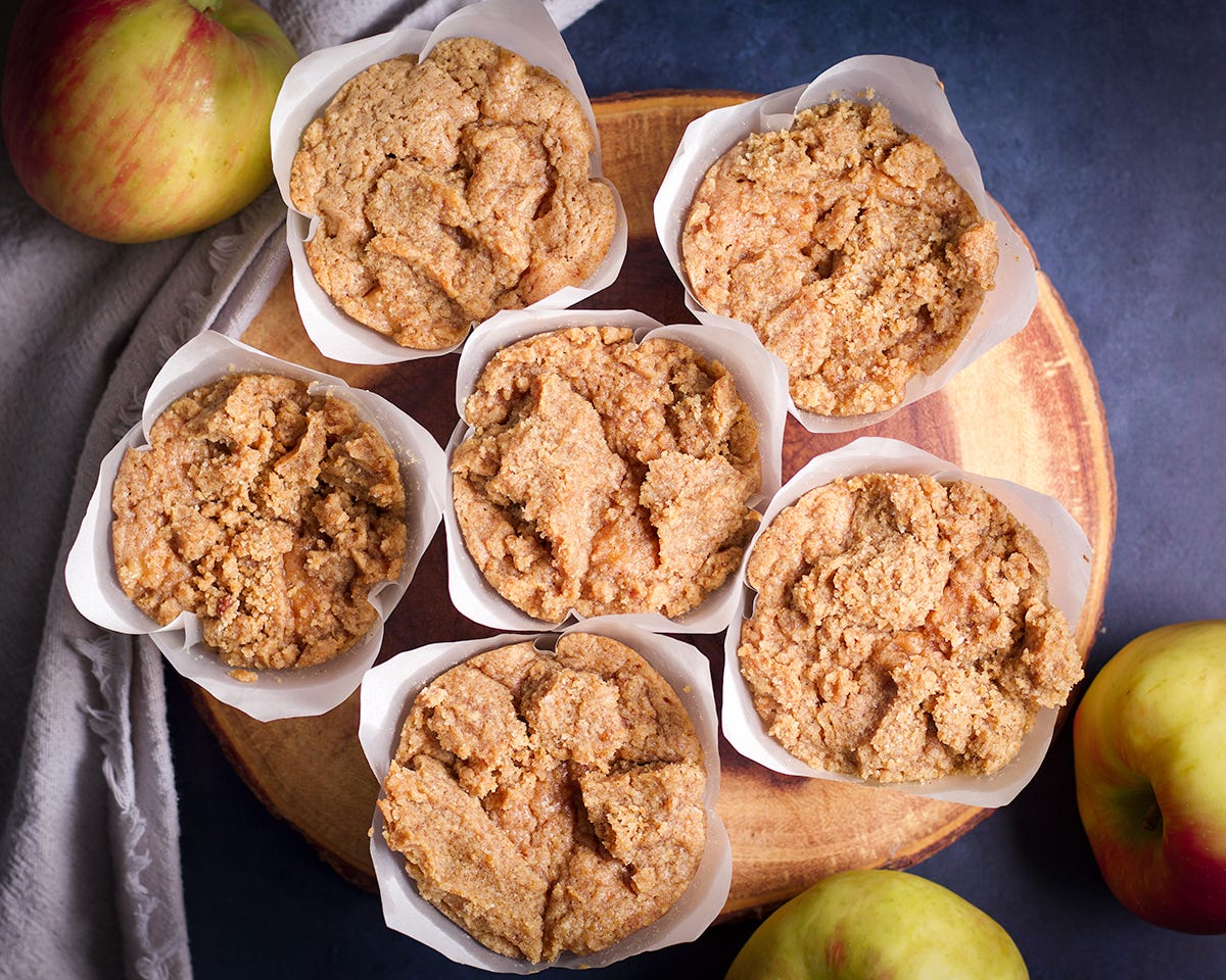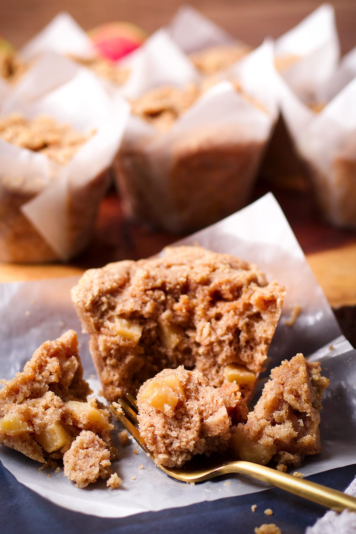 These are soft and tender muffins studded with soft, cinnamon spiked apples, and covered with a generous layer of brown sugar streusel.