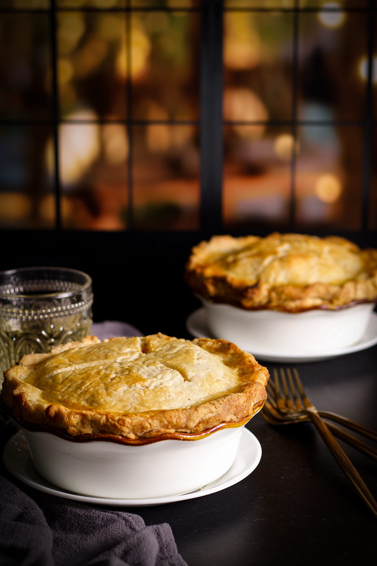 The recipe below for Foolproof pie crust and Chicken pot pie will make enough for two 6-inch double crust chicken pot pies. I’ll leave it up to you to decide whether one 6-inch pie is one serving or two. Steve and I typically share one pie and save the second one for the next day. But you’ll find no judgement here if you decide to keep an entire pie to yourself.