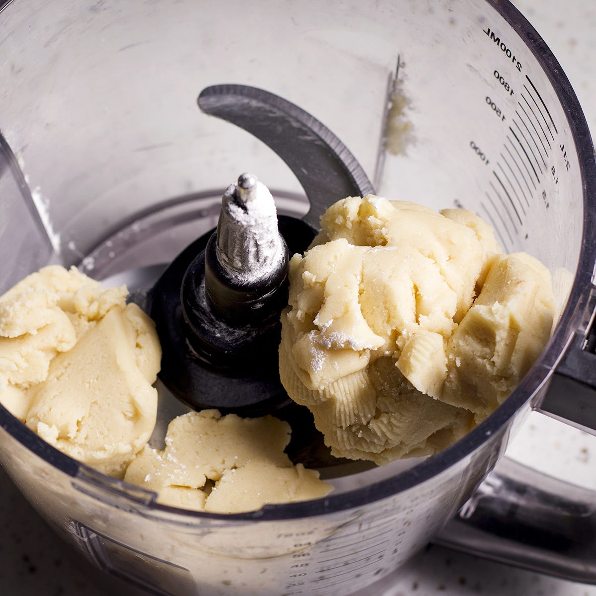 Add the egg white and 2 teaspoons of almond extract. Process or beat until the mixture comes together into a ball of dough.
