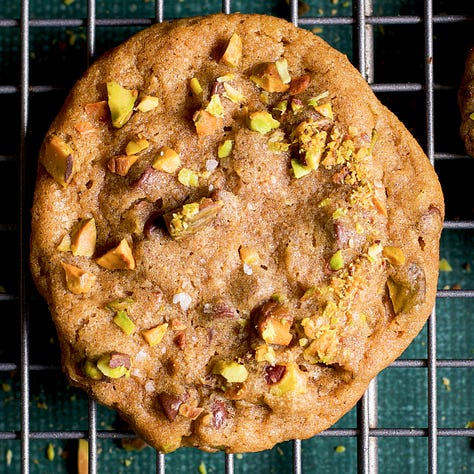 Chocolate Chip Pistachio Cookies with Brown Butter: This recipe goes all in on that cozy vibe with brown butter, brown sugar, cardamom, plenty of vanilla, and a touch of almond. The result are buttery, nutty chocolate chip cookies that makes me long to eat them on a crisp, cool day, wrapped in my favorite soft sweater.