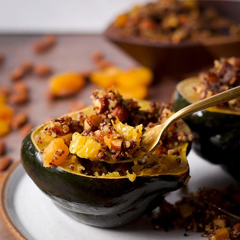 Quinoa Stuffed Acorn Squash: This is one of those all-in-one, simple, satisfying, feel-good meals that I can happily eat from October to March. It just happens to be vegan and therefore dairy free but makes exactly zero sacrifices on flavor or that hearty stick-to-your-ribs feeling we all start to crave when the temperature drops and the days are short.