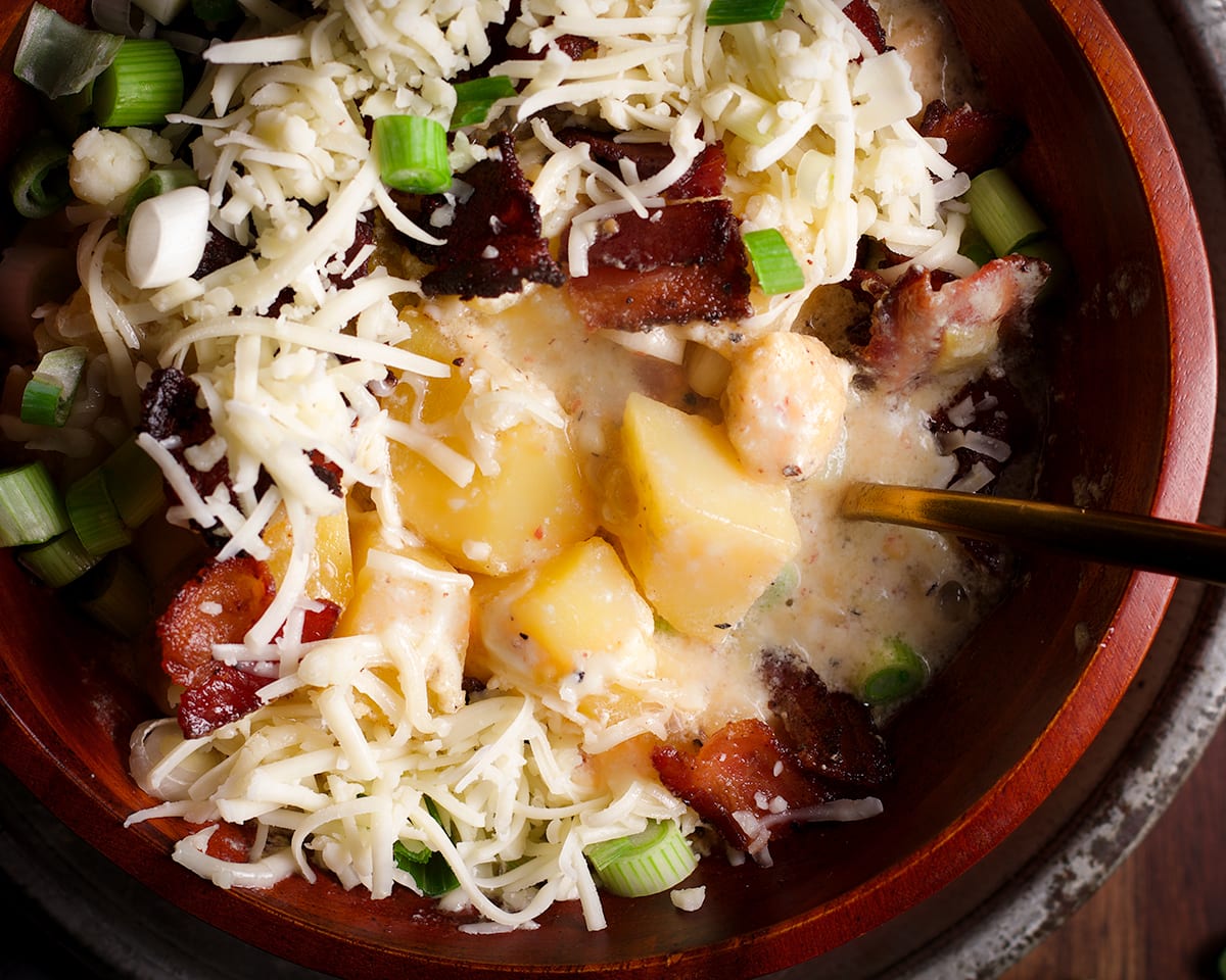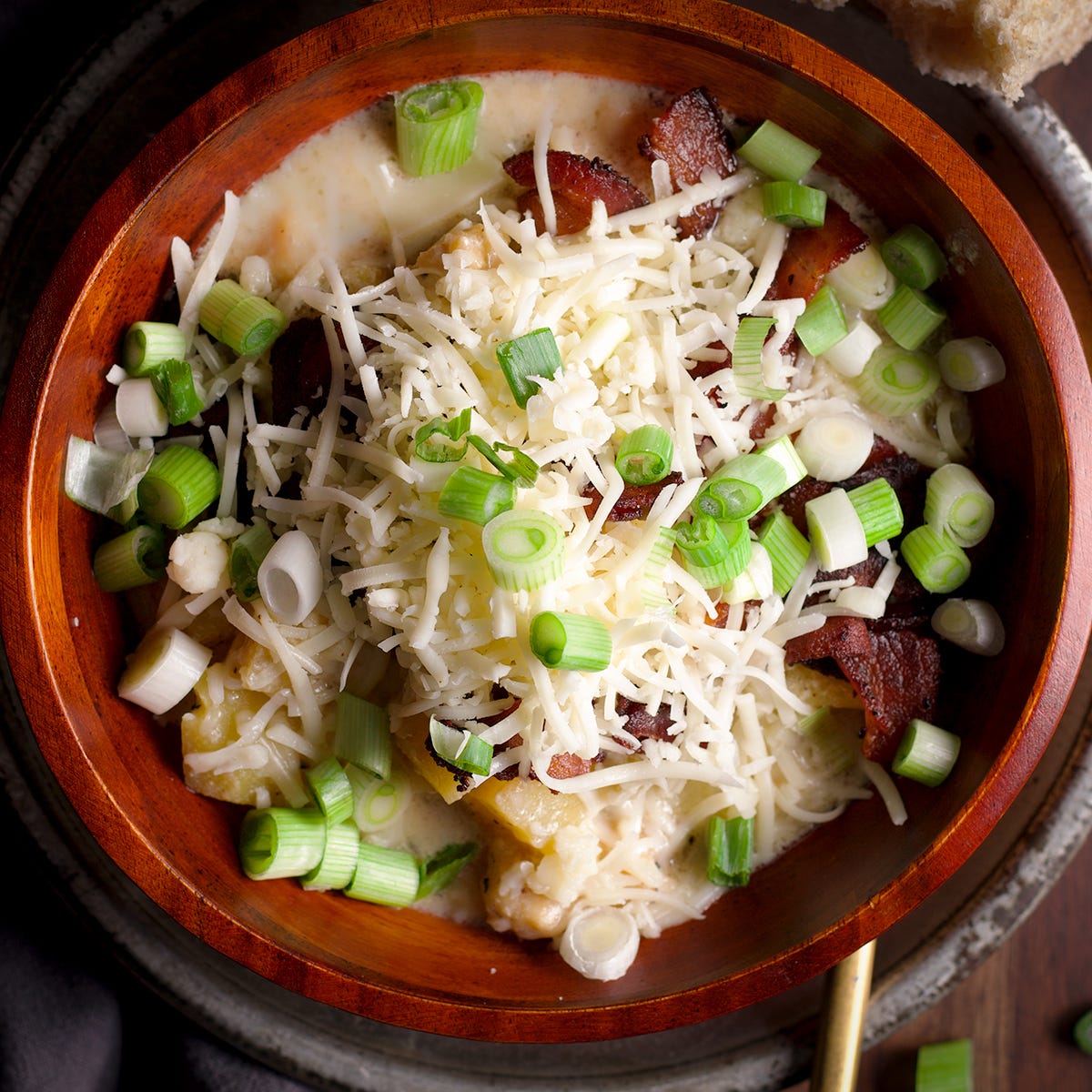 I’ve modified the recipe slightly to avoid that situation, cooking the potatoes in broth then adding cream or half and half at the end. I also increased the amount of bacon and added some chopped green chilies.