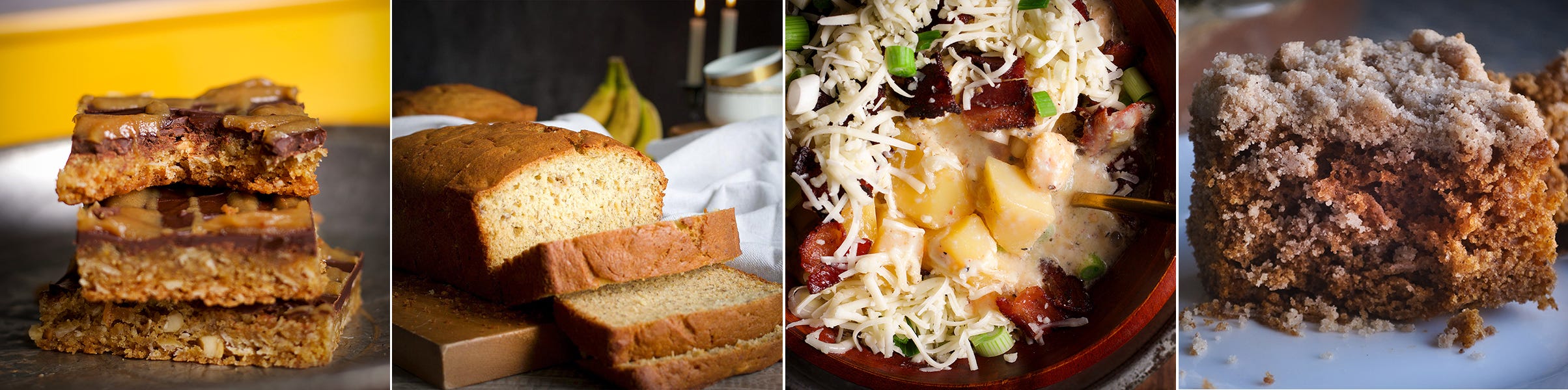 In honor of Mother’s day, four recipes from my childhood: My mother’s chocolate peanut butter bars and banana bread, my grandma’s potato soup, my great grandmother’s gingerbread.