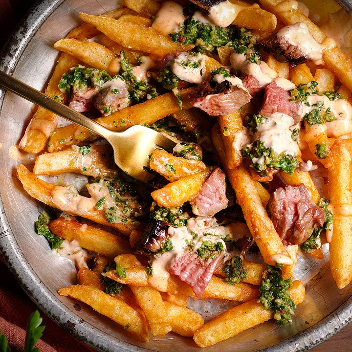 Chimichurri Steak Fries and Apple Cobbler
