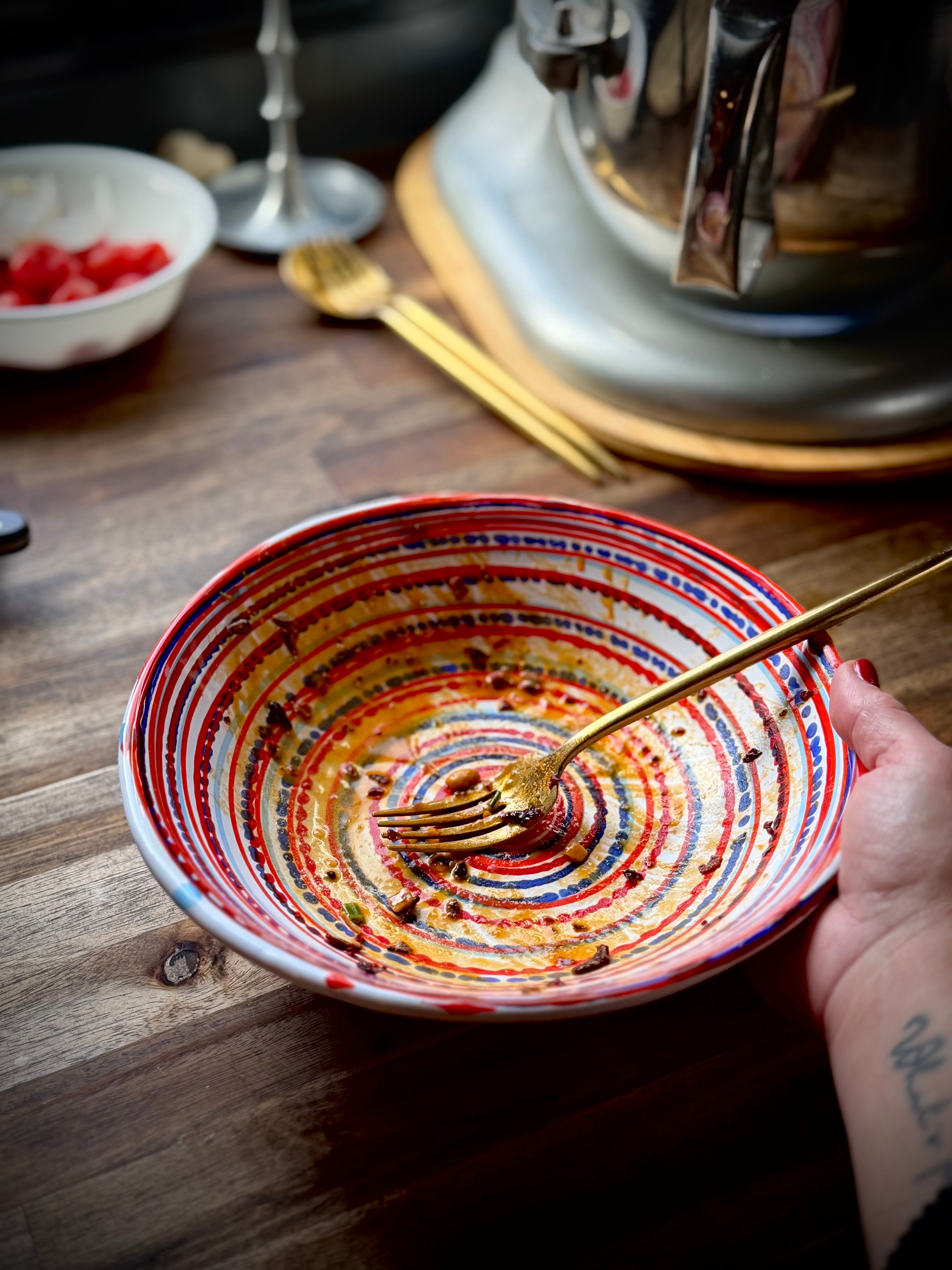We also show you how to cook one of the recipes from the book: Chili Crisp Tahini Noodle Bowls, and I think this photo, taken 5 minutes after the class, says it all…