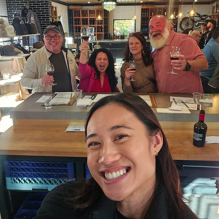 (This was only our second winery of the day and it appears from the second photo that I was already getting a little bit out of control. Settle down Rebecca.)