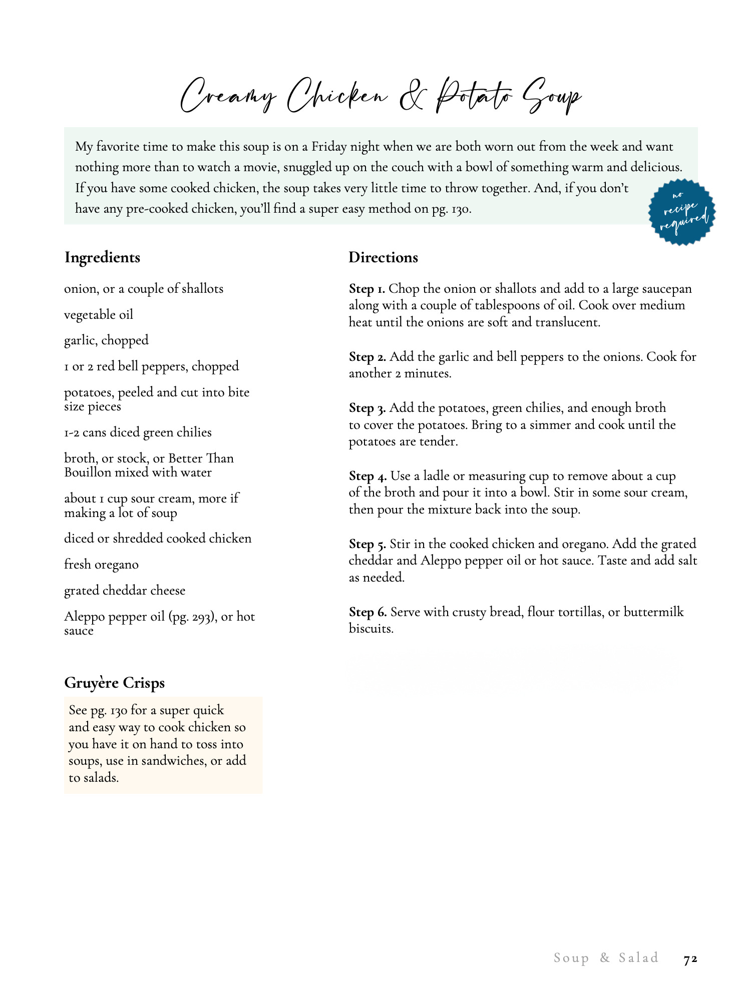 From the cookbook: Creamy Chicken and Potato Soup with Chilies and Cheese