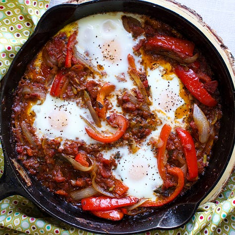 Chachouka (Shakshuka): Chachouka is a delicious vegetarian North African pepper and tomato stew that comes together in just a few minutes. Slightly spicy, light yet filling, and deliciously nourishing.