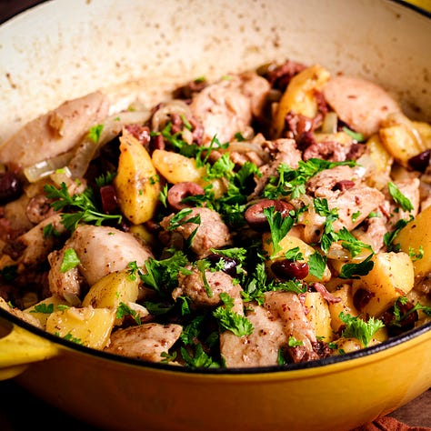 This is one of those dishes for which you can make as much or as little as you like. If you want to go heavy on the protein and light on the veggies or light on the veggies and heavy on the protein, do it. I’ve given some broad guidelines with the spices because allspice and cumin can be overpowering, and even though Aleppo pepper is a mild chili, if you use a lot you will end up with something quite spicy. Which maybe you want, but also maybe you don’t.
