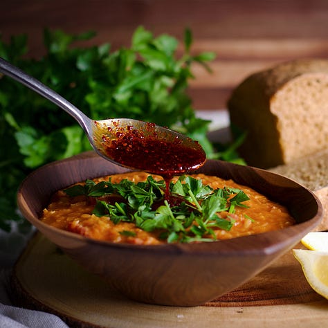 Red Lentil Soup with Ham and Aleppo Pepper: Red lentil soup with ham is one of those simple recipes that’s perfect for lazy evenings when you want a hot, comforting, nutritious meal in under an hour, with very little effort.