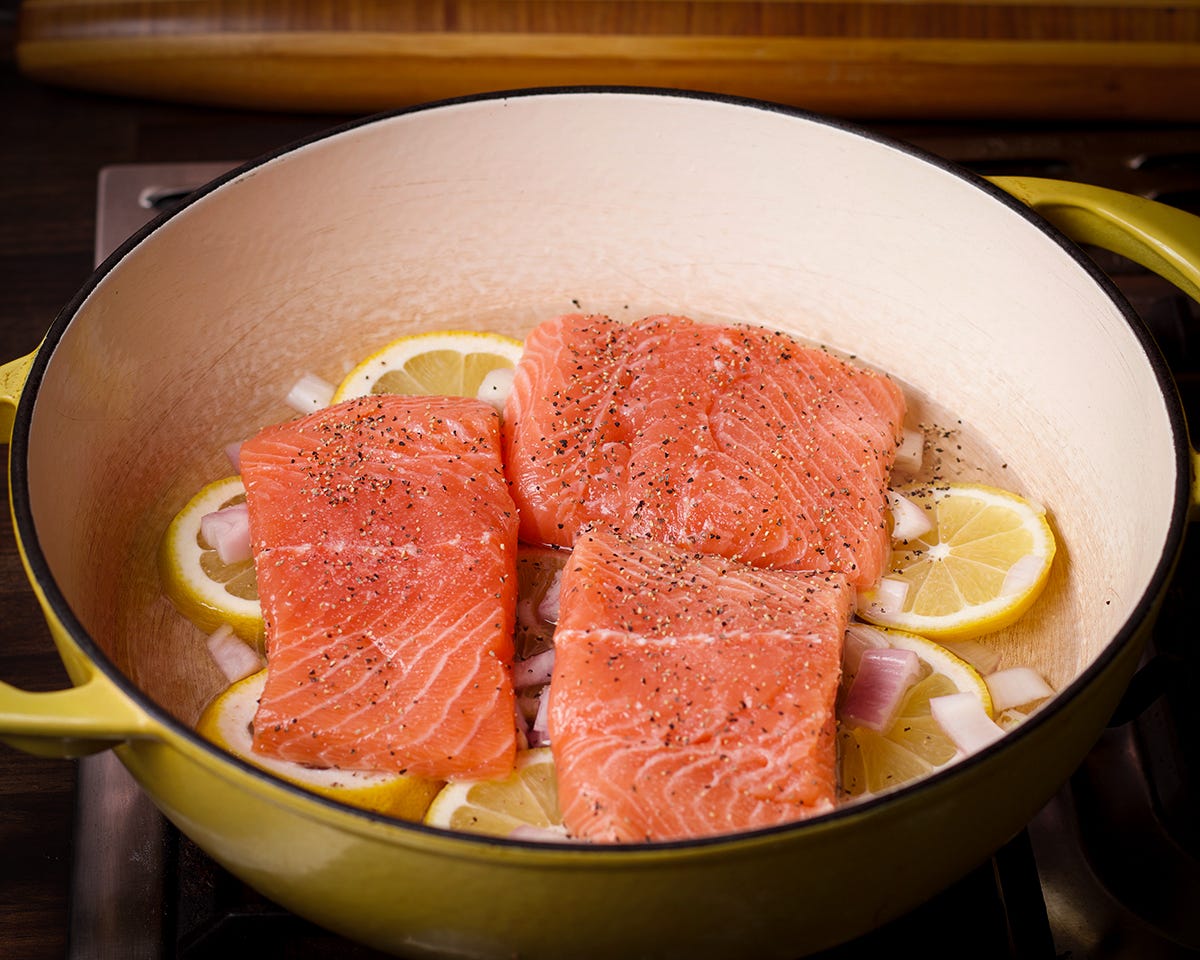 Consider poaching extra salmon just for the leftovers. It takes no more time to poach 4 salmon fillets than 2 and the leftover meat can be used in another dish later in the week, like this recipe for poached salmon salad.