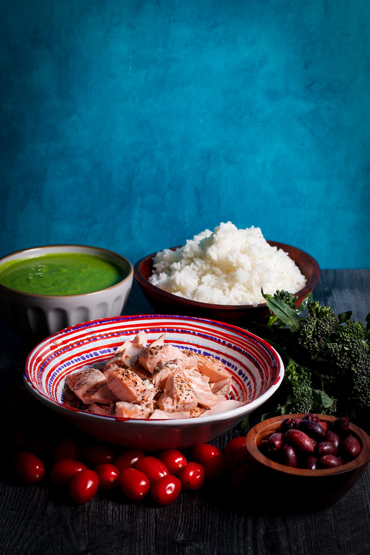 These salmon bowls are endlessly versatile. They are a great way to use up leftover veggies. To add some crunch, sprinkle on some chopped roasted nuts or french fried onions. If you’d like, opt for some roasted salmon instead of poached. This recipe from Betty Williams is my favorite: Slow Roasted Salmon.