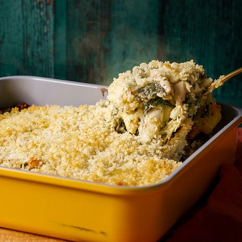 Spinach Artichoke Chicken Casserole: This casserole is everything we love about artichoke dip BUT a bit less rich and with plenty of cheese, tons of fresh spinach, and chicken of course. Plus a buttery, crispy layer of panko. Sub in turkey if you want to walk that line between traditional and nontraditional Thanksgiving fare.