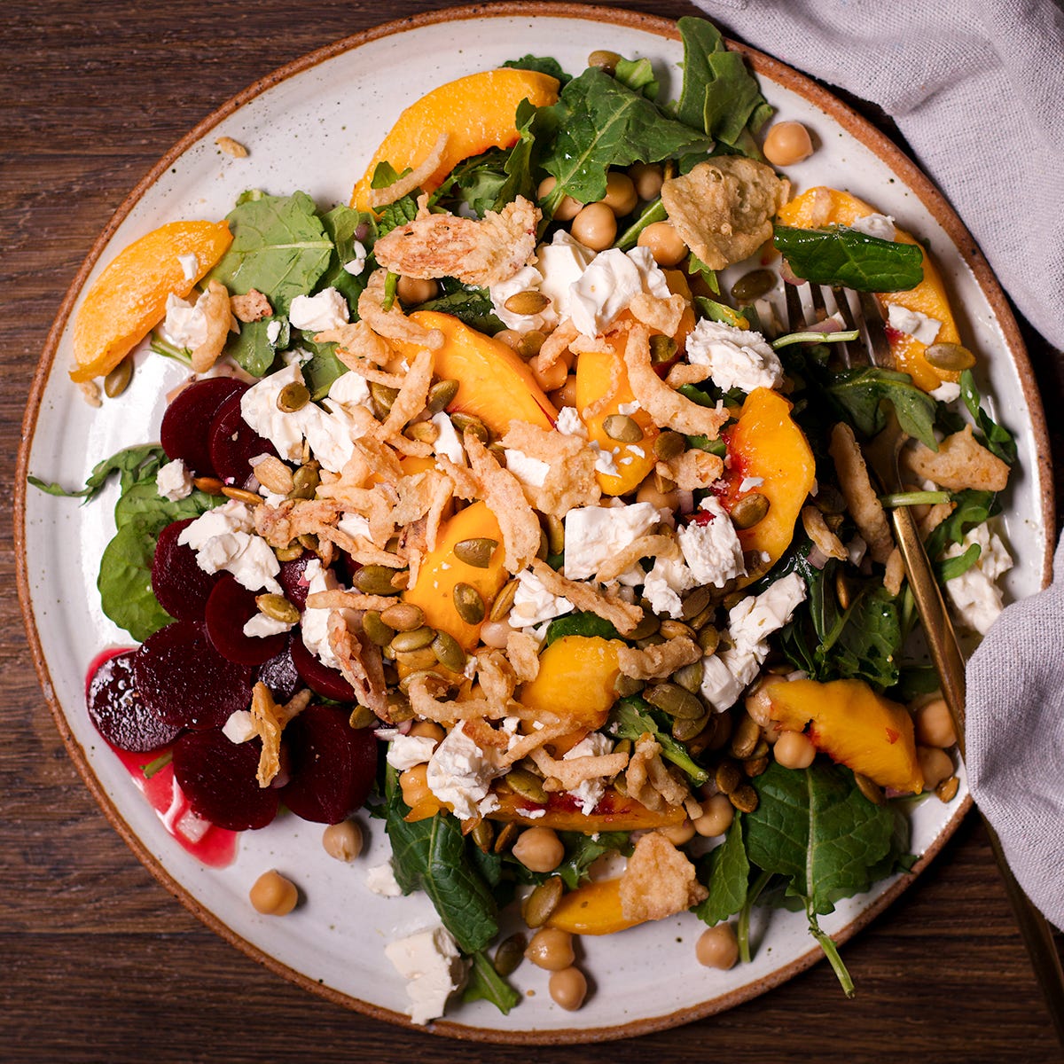 This salad checks all the boxes for me and takes full advantage of late summer produce. The nectarines can be swapped out for any kind of stone fruit, and as with most salads, feel free to add additional veggies.