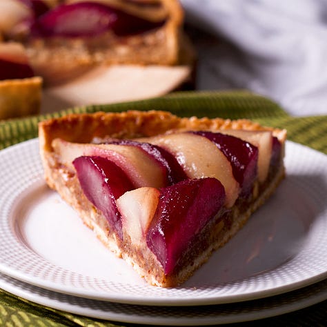 Poached Pear and Frangipane Tart: This is one of those desserts that you make when you really want to impress people with your mad baking skills but you don’t actually want to put in that much effort.
