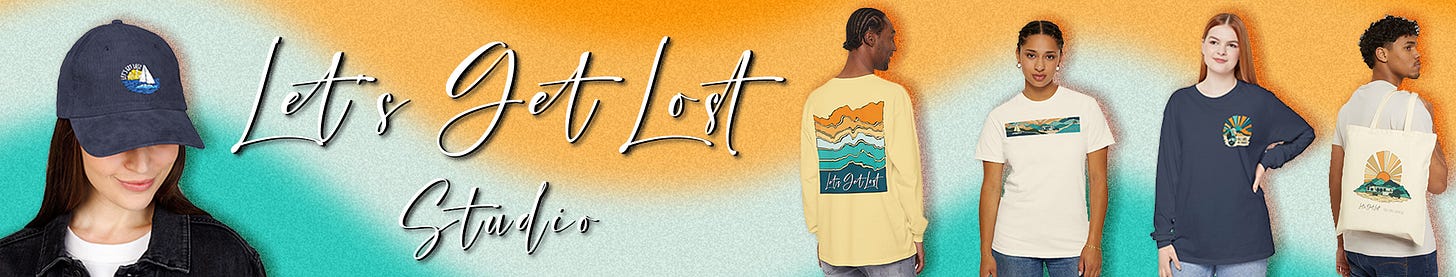 Did you know there’s a Let’s Get Lost Studio Store with hats, t-shirts, tea towels, journals, mugs, bags and other fun goodies?