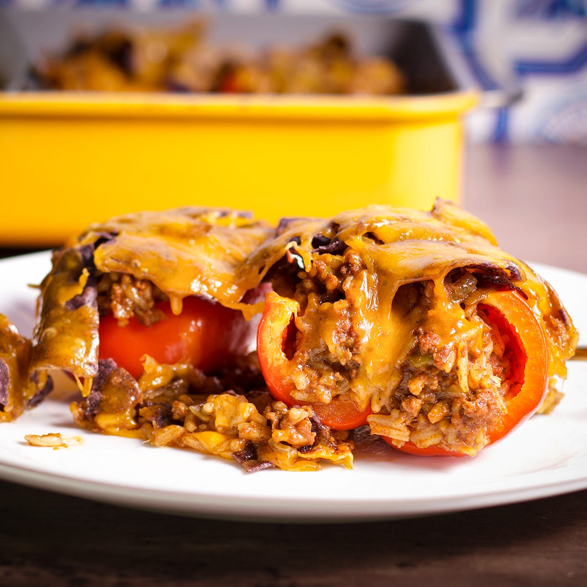It was a very good idea. The crunchy chip and cheese covered top of these stuffed peppers just might be my favorite part.