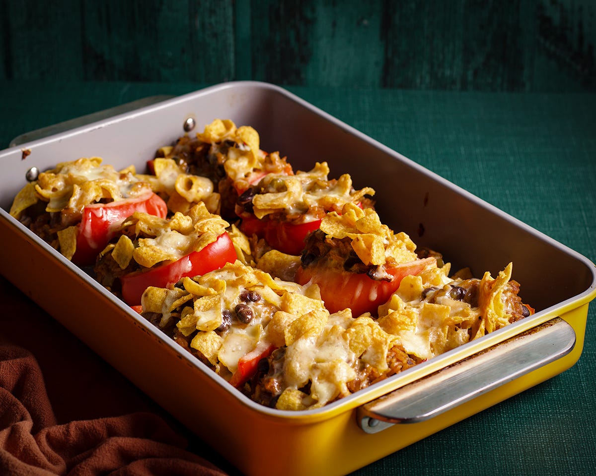 Meatless Stuffed Peppers with Corn Chips and Cheese