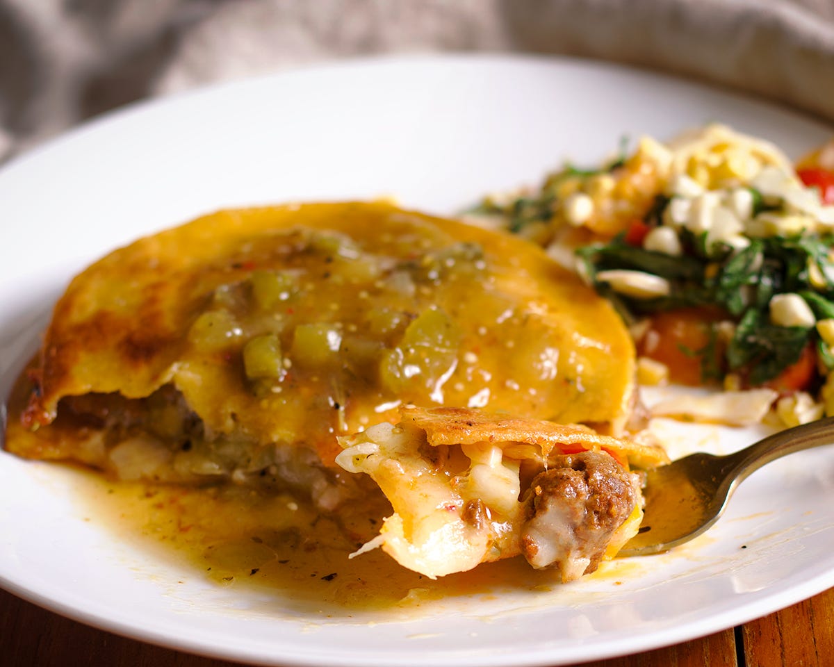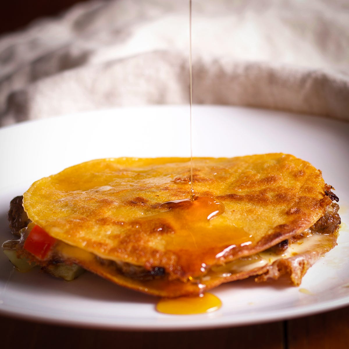 The concept is super simple: Sandwich whatever you like between cheese and corn tortillas and cook it in a skillet until the cheese is melted and the tortillas are golden and crispy.