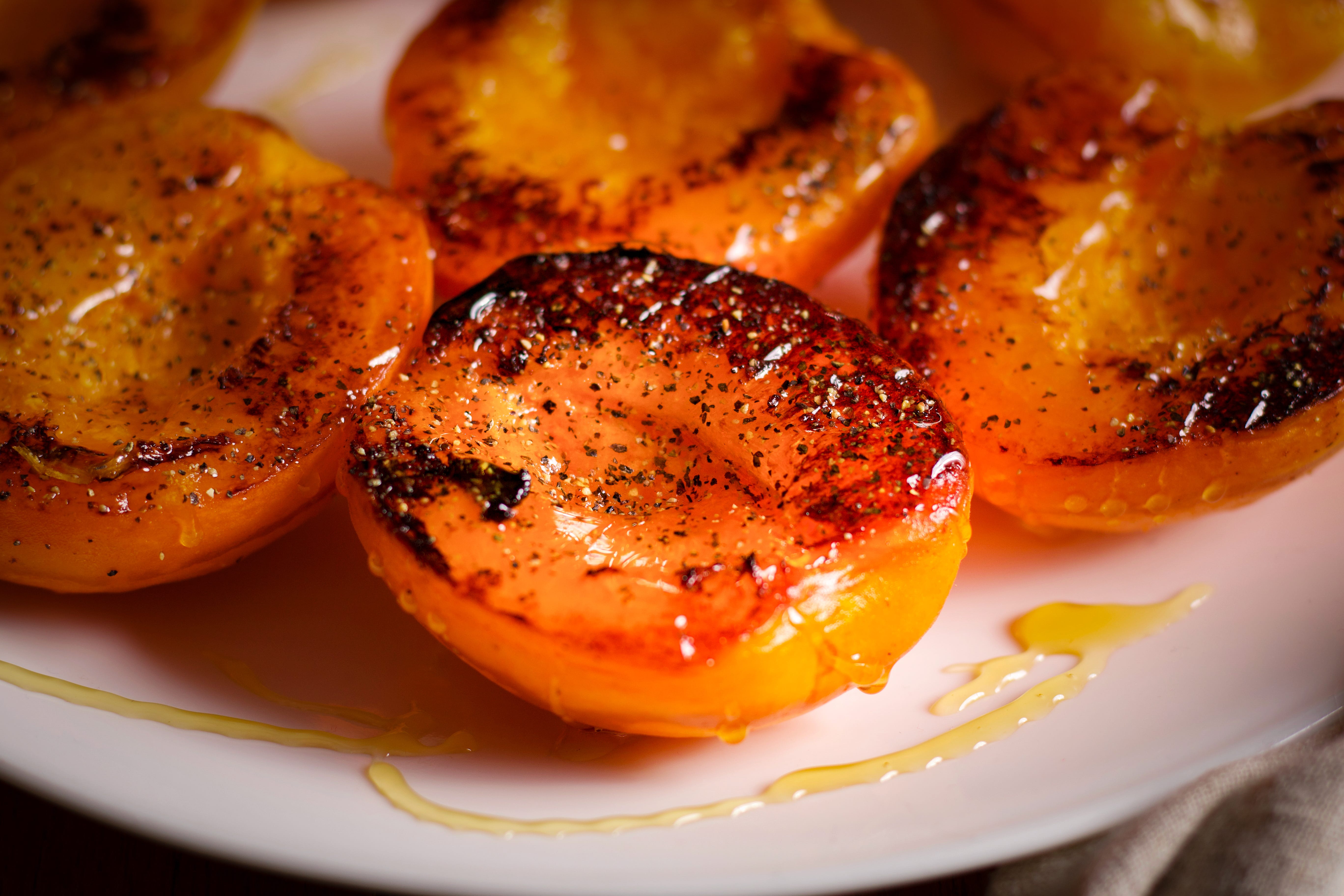 Note: You can also “grill” the apricots in a hot skillet. Simply add the oil to the skillet instead of brushing it on the apricots and set the skillet over medium-high heat. Add the apricots, cut side down, to the hot skillet and let them cook until they’ve formed a dark brown crust.