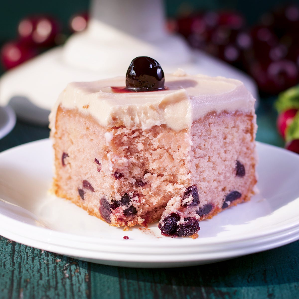 Here’s where to get the recipe —> Cherry Cake with Cherry Frosting