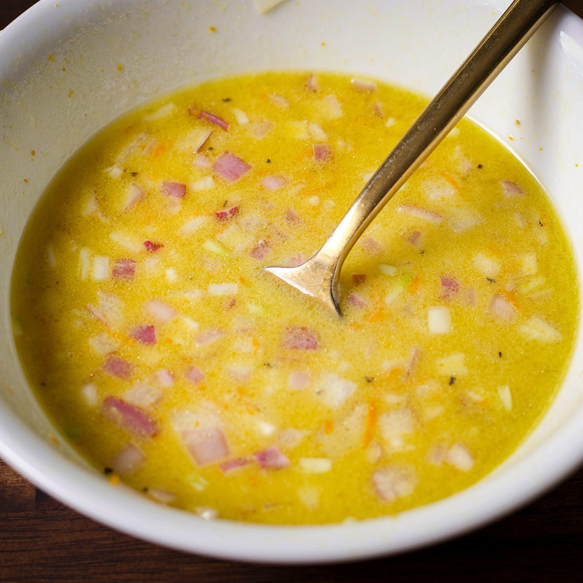Slowly pour the olive oil into the dressing, whisking with a fork or wire whisk as you pour.